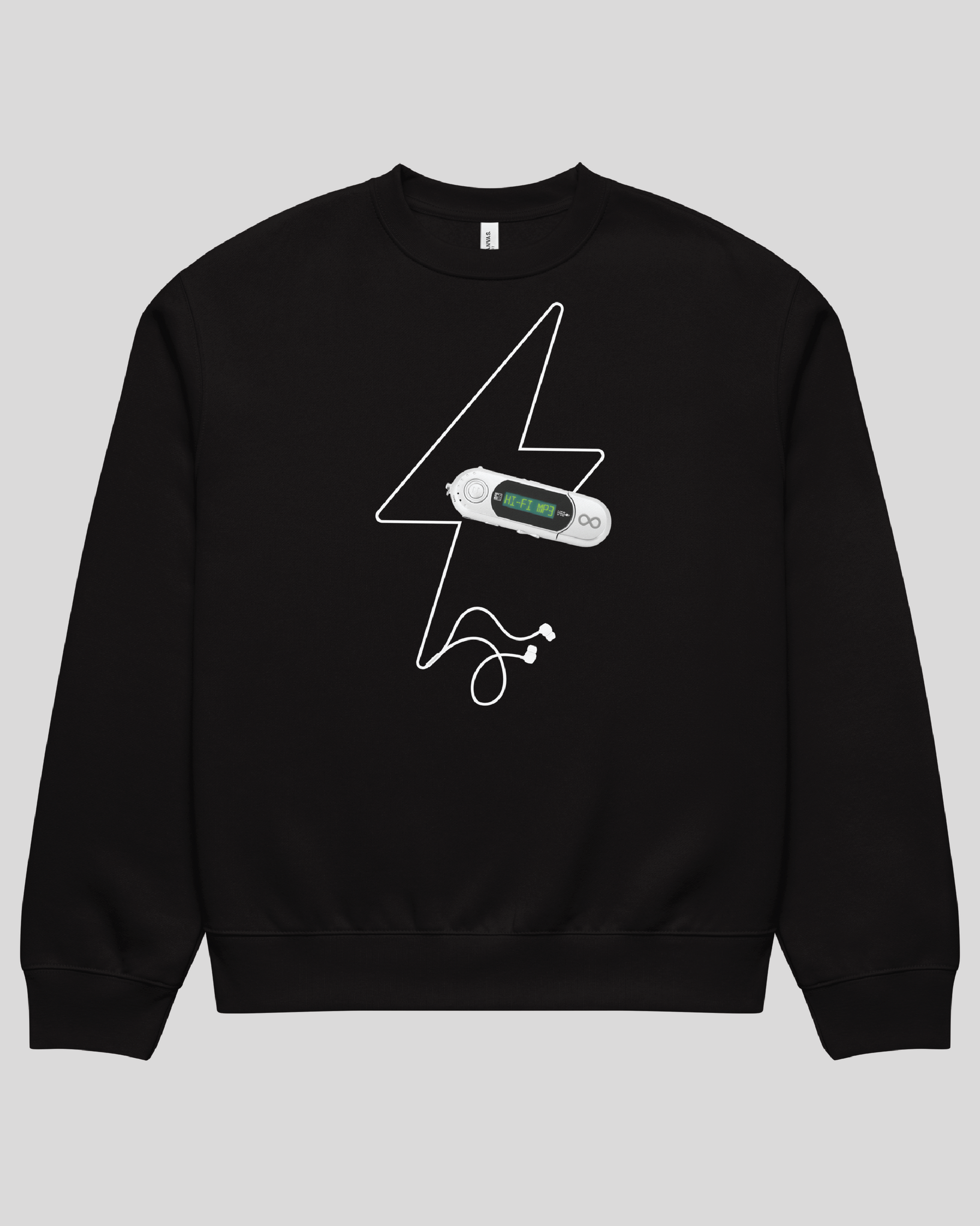 HI-FI MP3 Oversized Black Adult Crewneck
